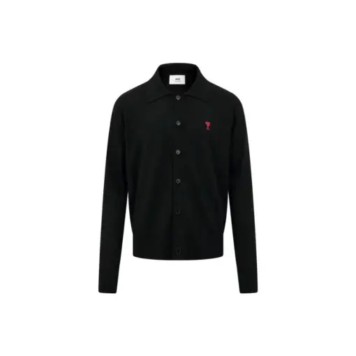 Ami Paris Ami De Coeur Collared Cardigan Black Merino Wool