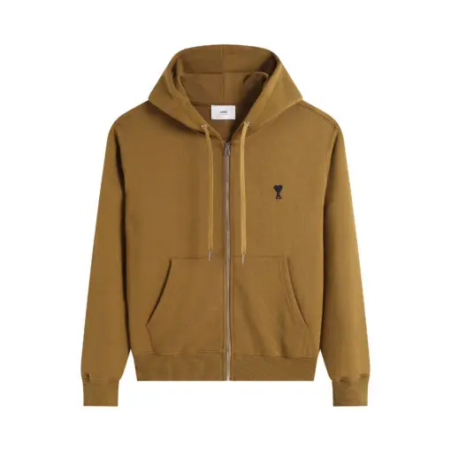 Ami Paris Ami De Coeur Zip-Up Hoodie Beige