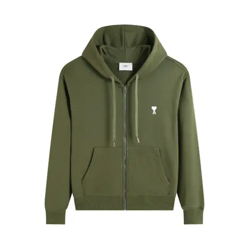 Ami Paris Ami De Coeur Zip-Up Hoodie Olive Green