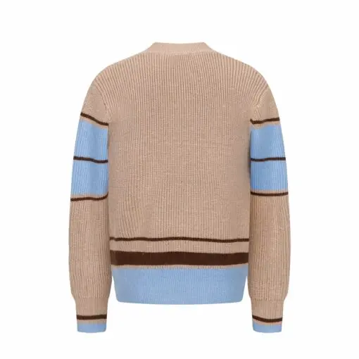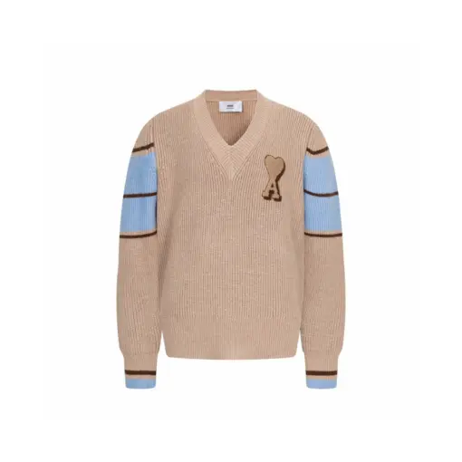 Ami Paris Brown Wool College Cardigan Camel With Sky Blue