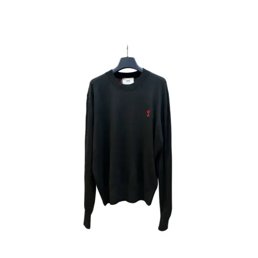 Ami Paris De Coeur Logo Embroidered Merino Wool Crew Neck Sweater Black