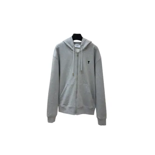 Ami Paris De Coeur Zip Up Hoodie Gray