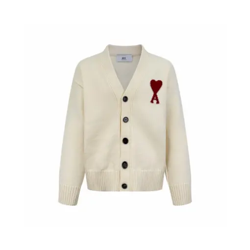 Ami Paris Heart Shaped Cardigan Wool Sweater Cream