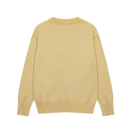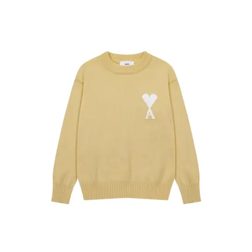 Ami Paris Jacquard ADC Merino Crew Neck Pullover Sweater Camel With White Heart Logo