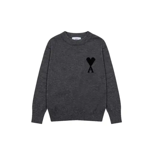 Ami Paris Jacquard ADC Merino Crew Neck Pullover Sweater Dark Gray