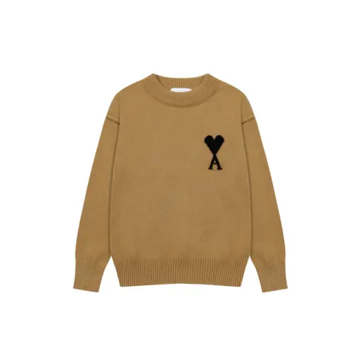 Ami Paris Jacquard ADC Merino Crew Neck Pullover Sweater Khaki