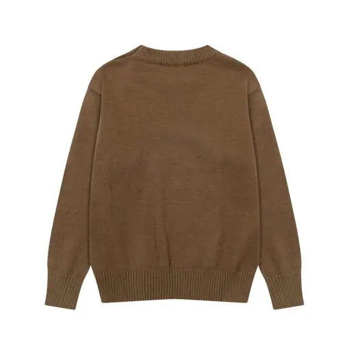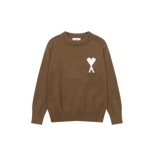 Ami Paris Jacquard ADC Merino Crew Neck Pullover Sweater Khaki With White Heart Logo