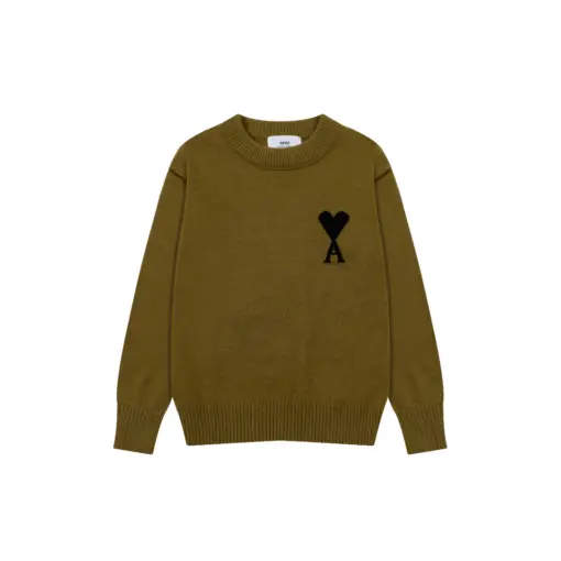 Ami Paris Jacquard ADC Merino Crew Neck Pullover Sweater Olive Green
