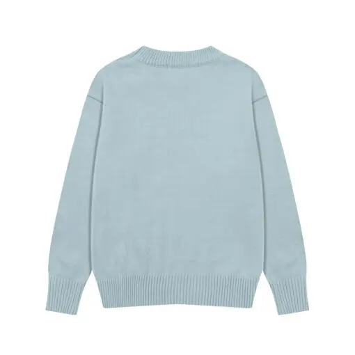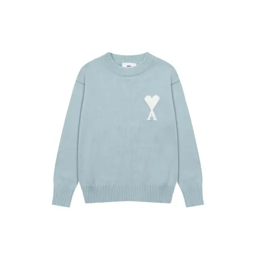 Ami Paris Jacquard ADC Merino Crew Neck Pullover Sweater Sky Blue With White Heart Logo