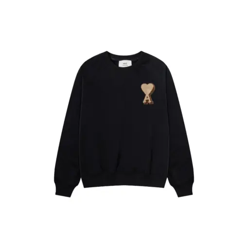 Ami Paris Towel Embroidered Large Heart Towel Embroidered Raglan Crew Neck Pullover Sweatshirt Black