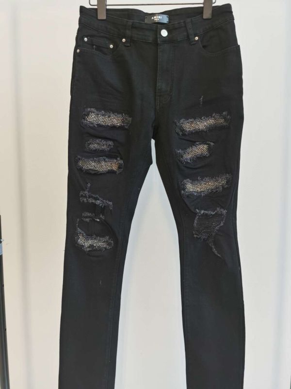 AMIRI Men’s MX1 Bandana Ripped Patch Skinny Jeans Black