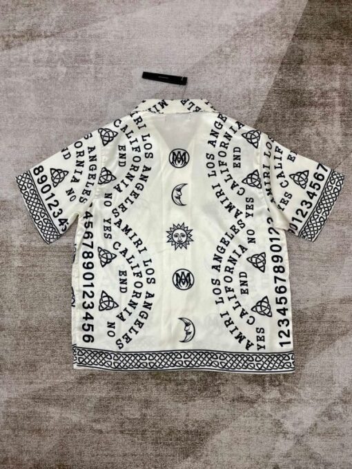 Amiri Ouija Board Print Silk Bowling Shirt White
