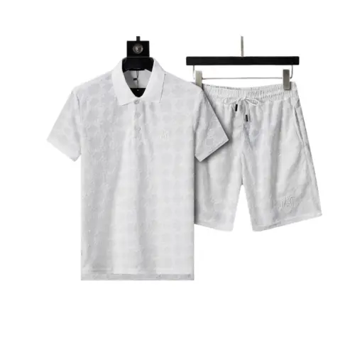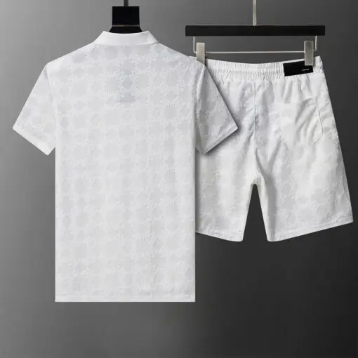 Amiri Polo Crew Neck Short Sleeve Terry Jacquard Shorts Set White Shirt