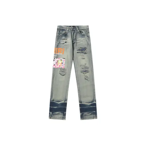Amiri Straight Leg Logo Appliquéd Embroidered Distressed Jeans