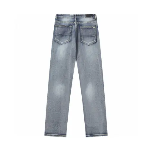 Amiri Straight Leg Logo Appliquéd Embroidered Distressed Jeans Light Blue With Orange Monogram