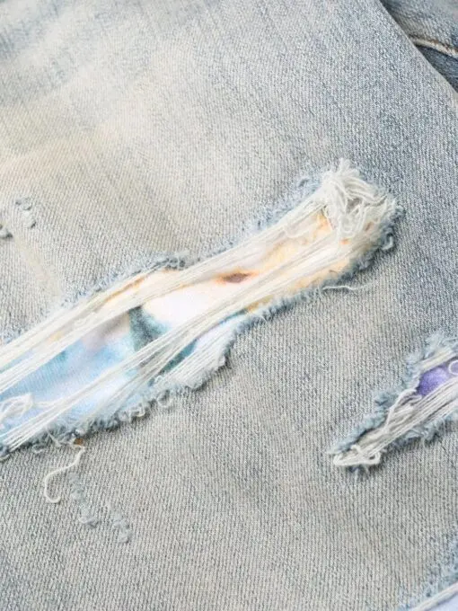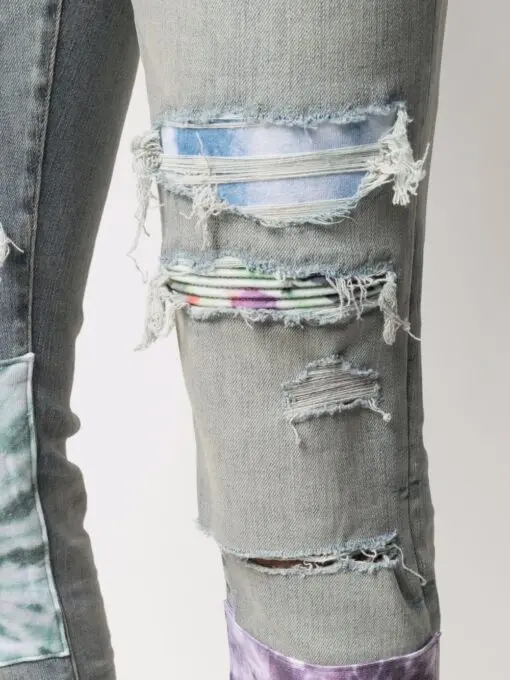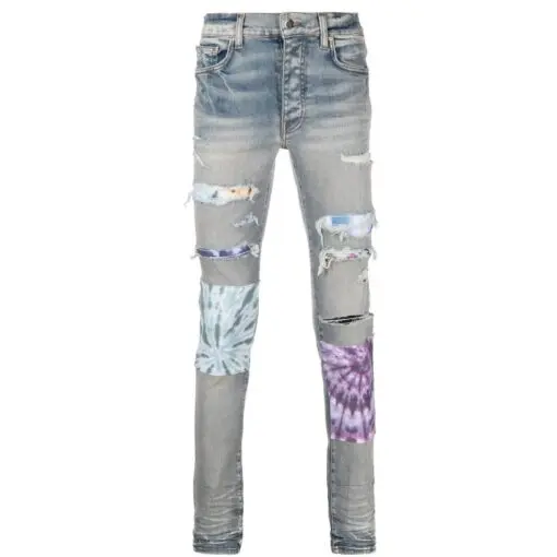 AMIRI Tie Dye Art Patch Skinny Jeans Fade White