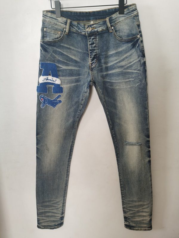 Amiri Varsity Applique Logo Skinny Jeans Antique Indigo Wash