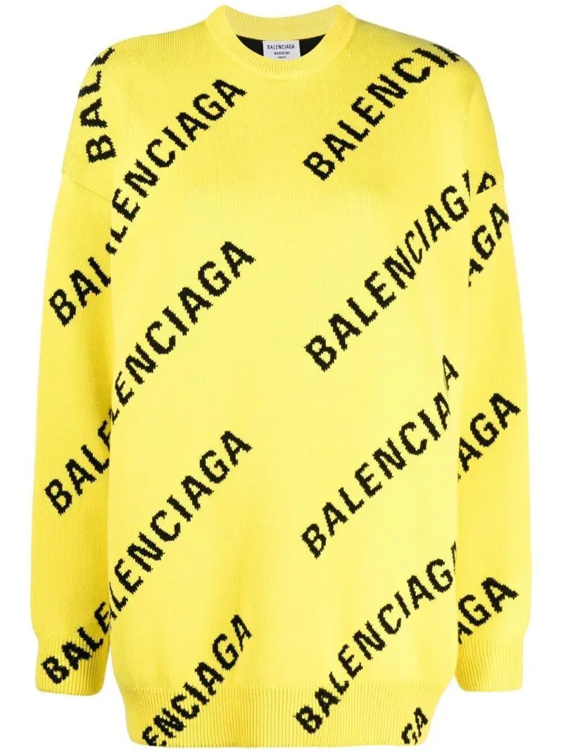 Balenciaga Allover Logo Crew-Neck Jumper Yellow