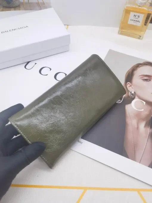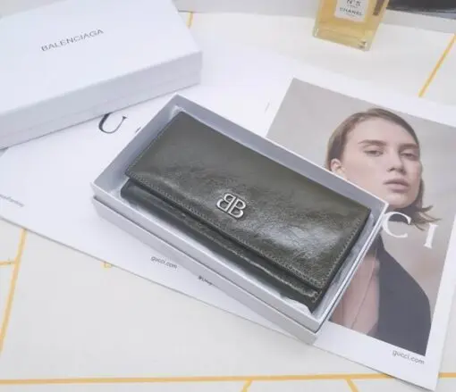 Balenciaga BB-logo Leather Wallet Olive Green