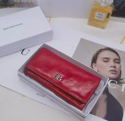 Balenciaga BB-logo Leather Wallet Red