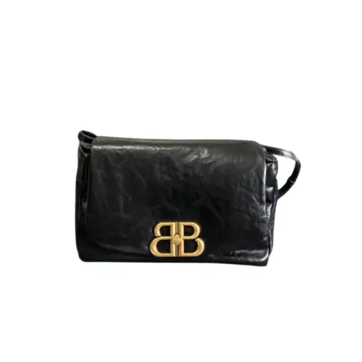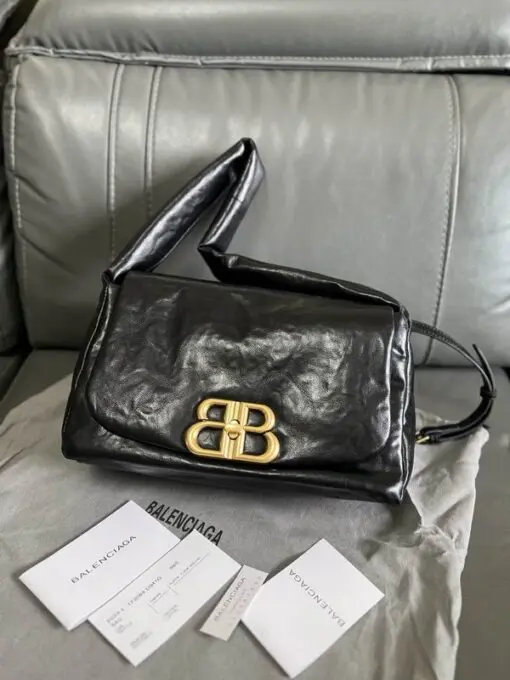 Balenciaga BB Soft Flap Shoulder Bag Black Calfskin