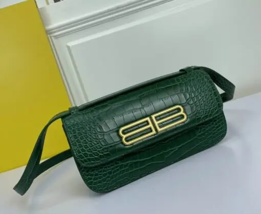 Balenciaga Gossip Shoulder Bag Green Crocodile
