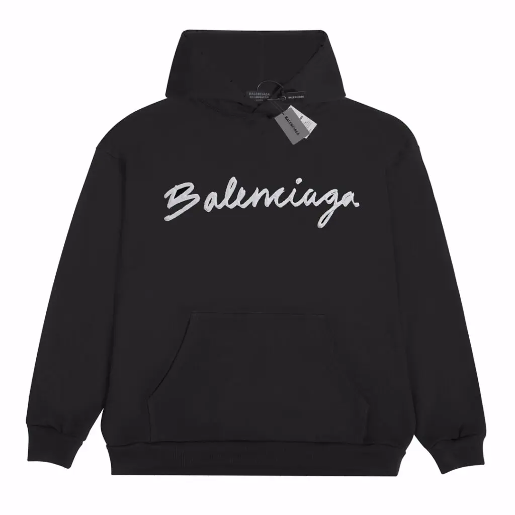 Balenciaga White logo Hoodie Black