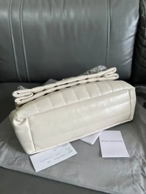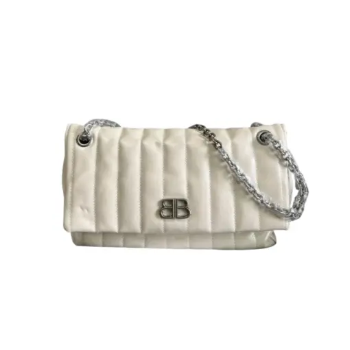 Balenciaga White Monaco Quilted Leather Chain Bag