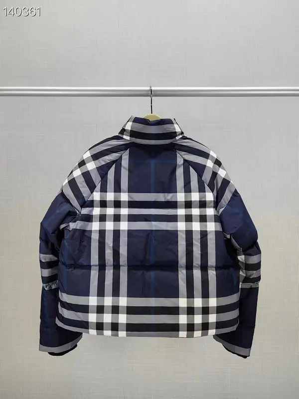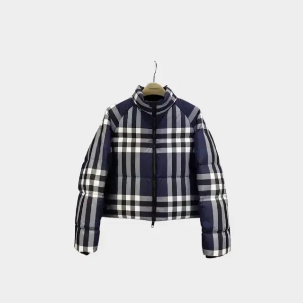 Burberry Check Cropped Puffer Jacket Blue/White