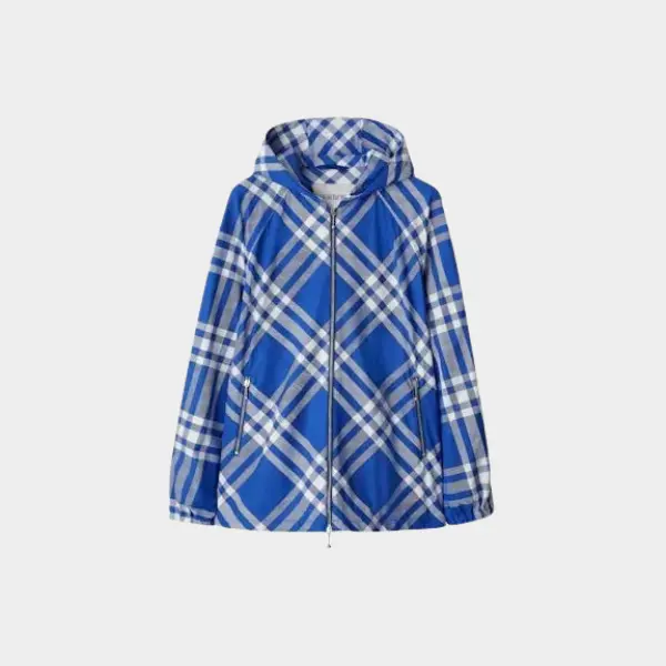 Burberry Check-Pattern Hooded Jacket Cobalt Blue/White