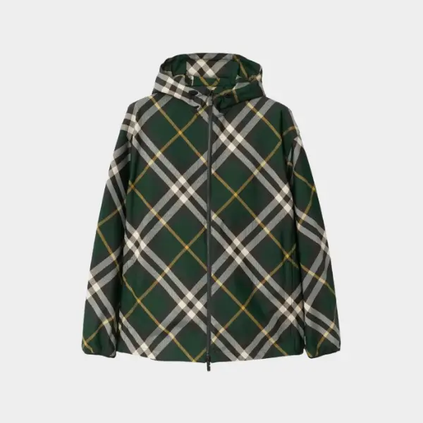 Burberry Check-Pattern Zipped Hooded Jacket Green