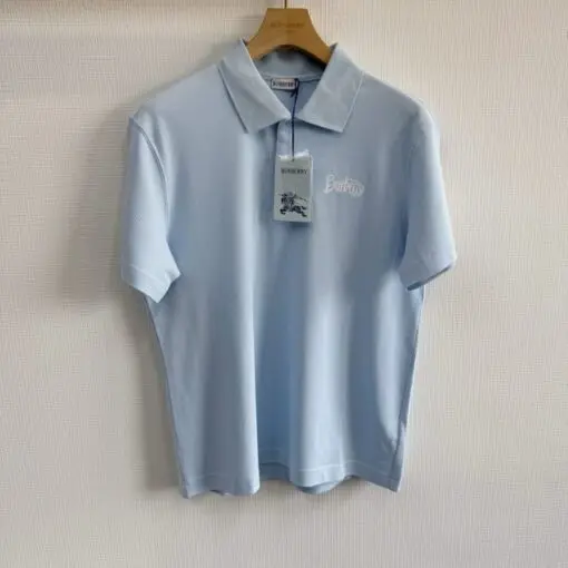 BURBERRY Cotton Polo T-Shirt Sky Blue