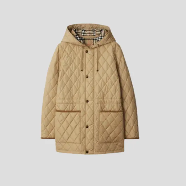 Burberry Diamond-Quilted Hooded Jacket Beige