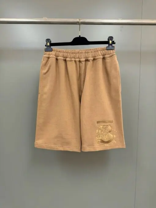 BURBERRY Embroidered Monogram Ekd Cotton Shorts Beige