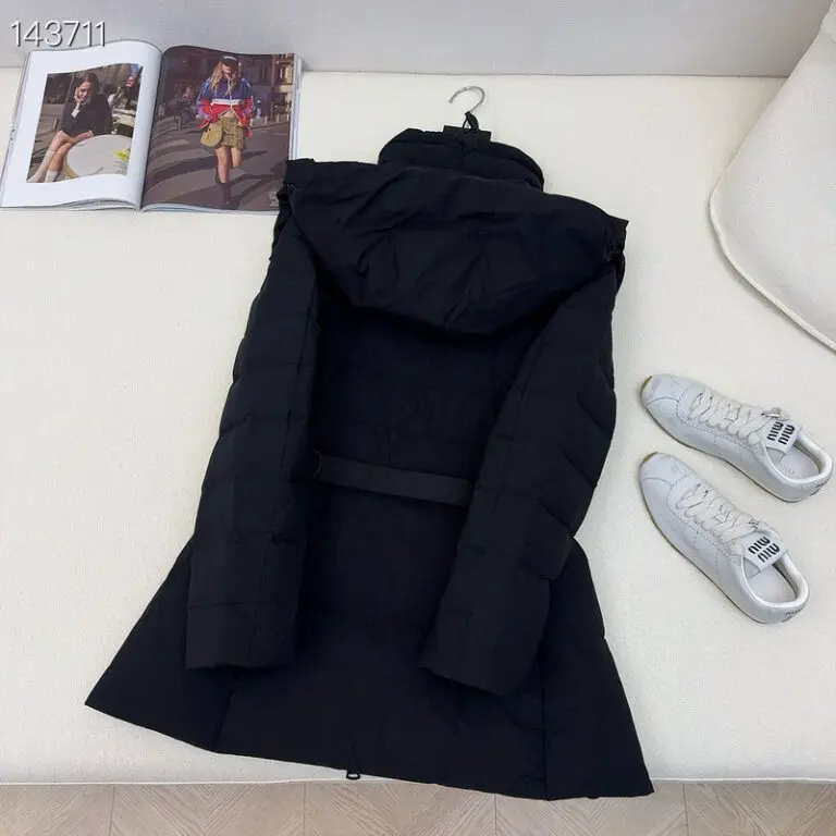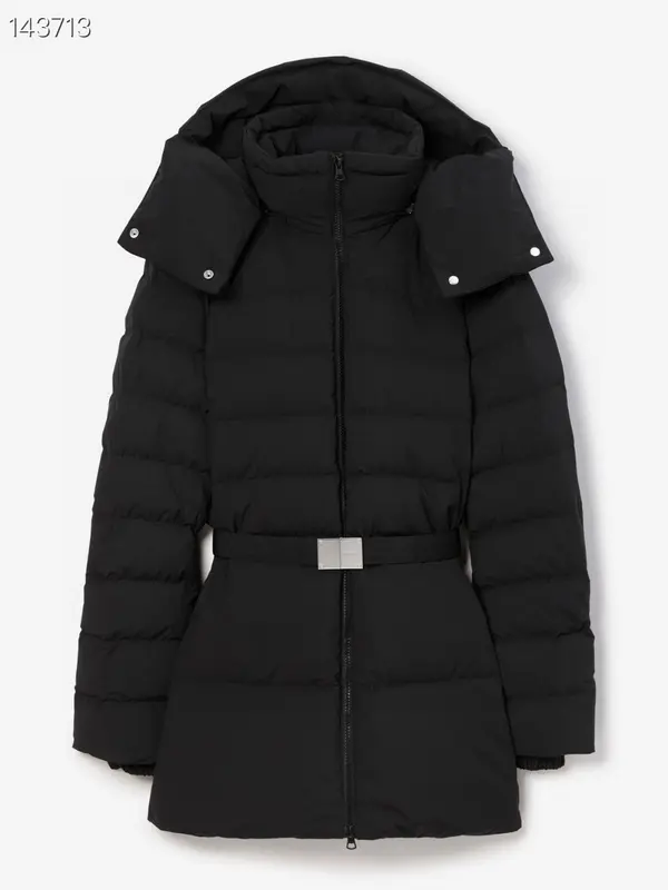 Burberry Hooded Puffer Belt and Double Zipper Jacket Black