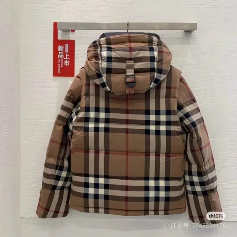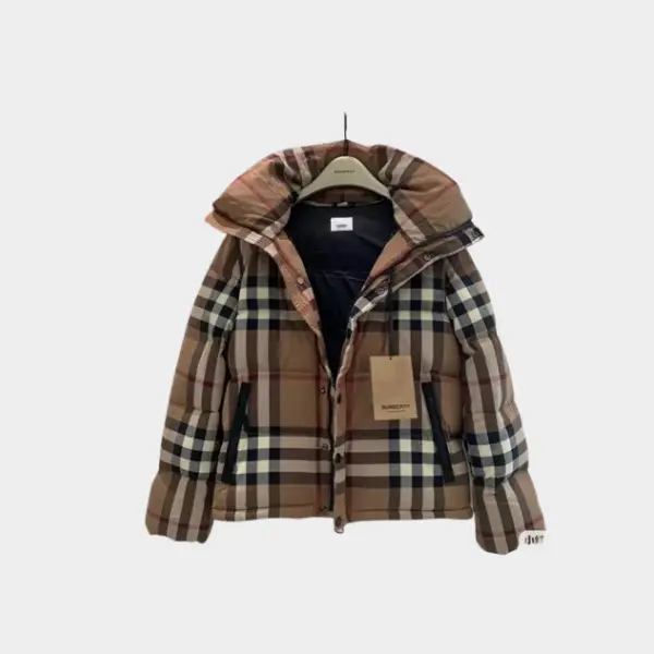 Burberry Hooded Puffer Jacket Check Brown