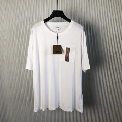 Burberry Stripe Trim Pocket Cotton T-shirt White