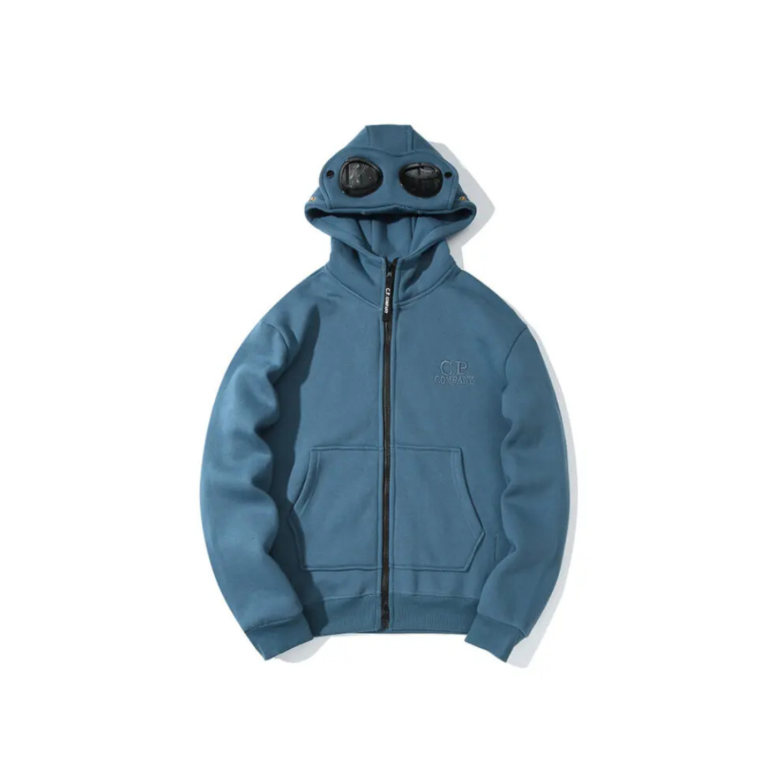 C.P. Company Goggles-Detail Zip-Up Hoodie Blue