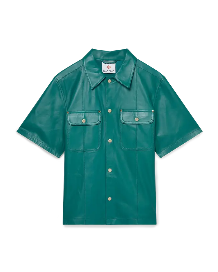 CASABLANCA Leather Short Sleeve Shirt Green