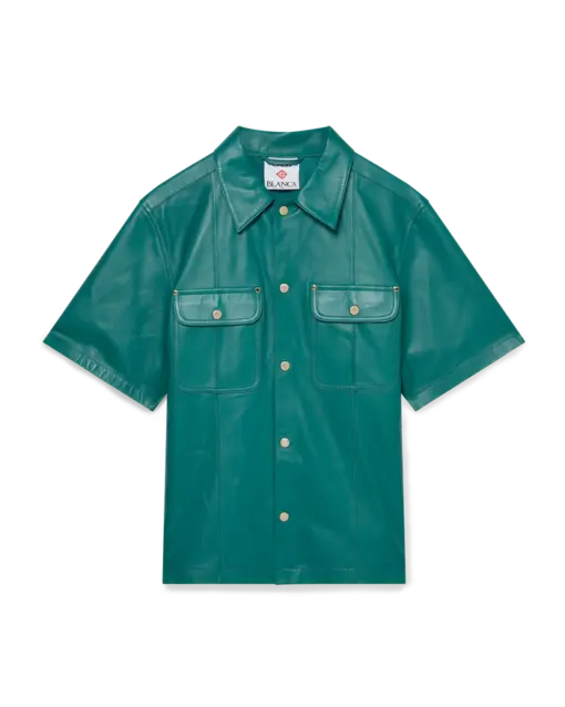 CASABLANCA Leather Short Sleeve Shirt Green