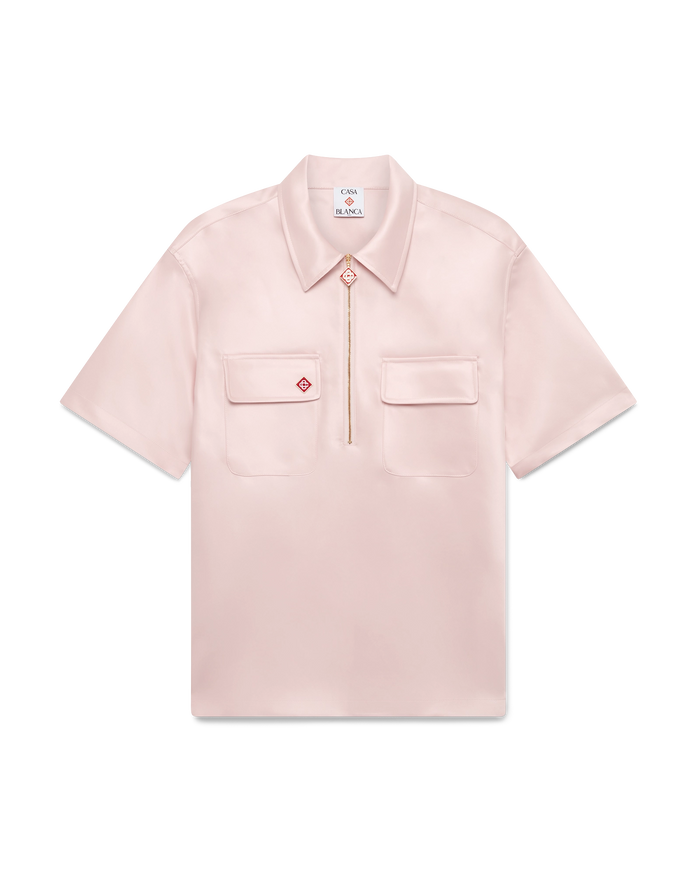 CASABLANCA Satin Quarter Zip Short Sleeve Shirt Pink