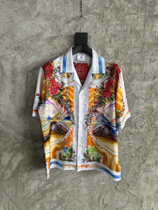 Casablanca Short-Sleeve Cuban Collar Silk Shirt Vintage Car