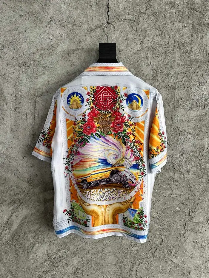 Casablanca Short-Sleeve Cuban Collar Silk Shirt Vintage Car