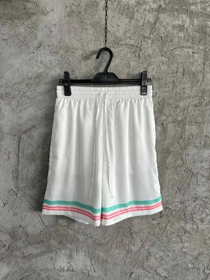 Casablanca Tennis Club Icon Pastelle Silk Shorts White