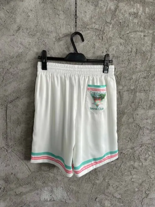 Casablanca Tennis Club Icon Pastelle Silk Shorts White
