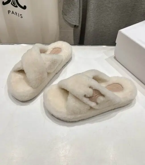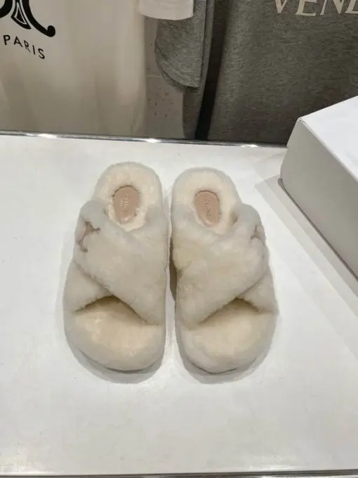 Celine Cross Fluffy Fur Slippers