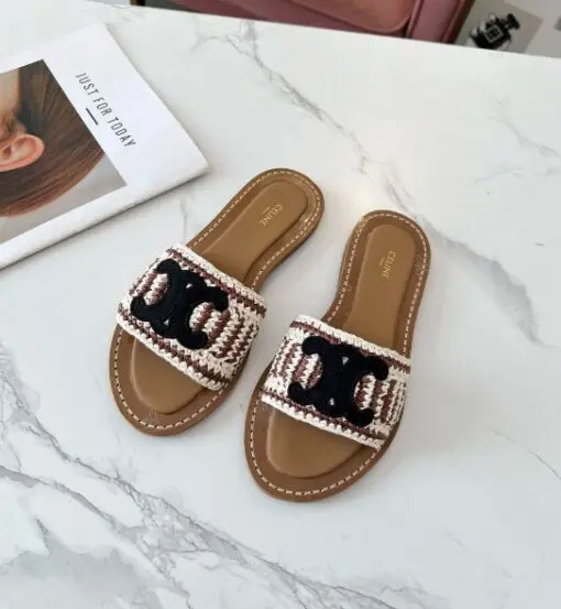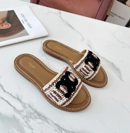 Celine Raffia Leather Sandal Black Logo