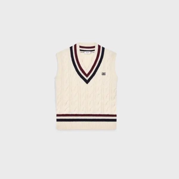 Celine triomphe v-neck cable-knit in cashmere ECRU
