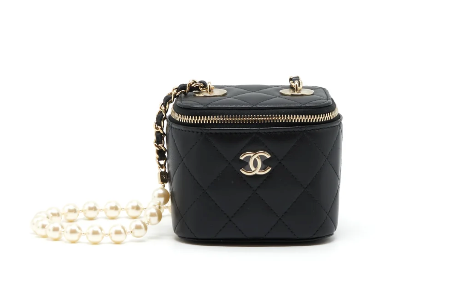 Chanel Mini Vanity With Pearl Chain Lambskin Black