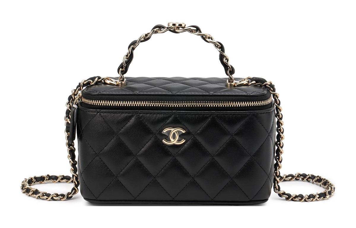Chanel Vanity Rectangular Top Handle Bag Black & Gold